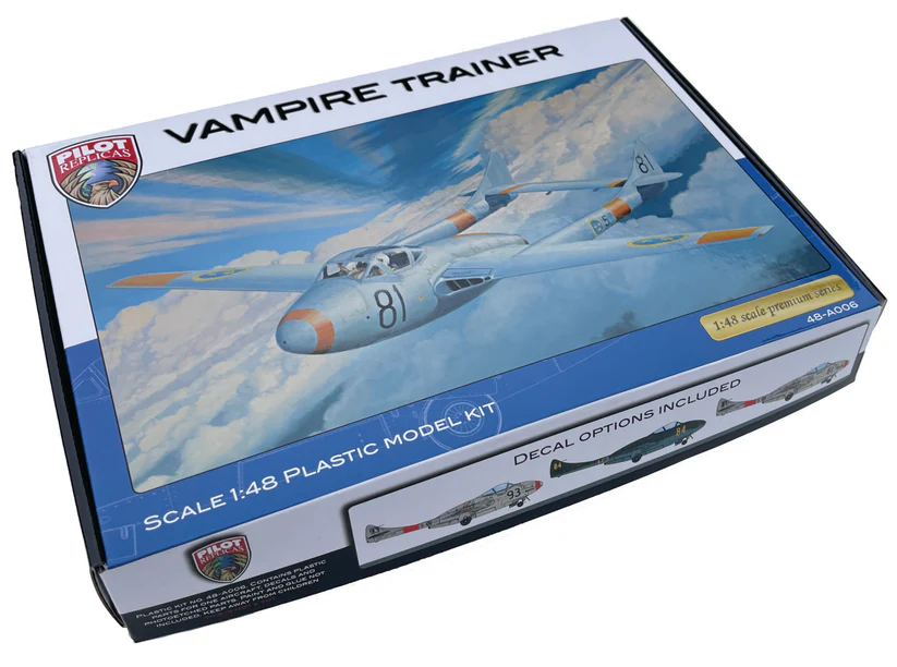 In its original single-seat version, the Vampire first flew on September 20, 1943. The 2-seater trainer version did not fly until November 1950 and was developed from the previously developed night fighter version of the Vampire which was a modified Vampire equipped with an AI Mk X radar (similar to those fitted to the Mosquito; P-61 Black Widow) and had 2 man crew.